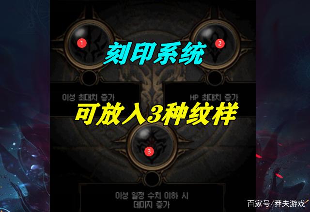 刻印系统中可以放入3种不同颜色的“纹样”,每种纹样提供的属性各有特色: