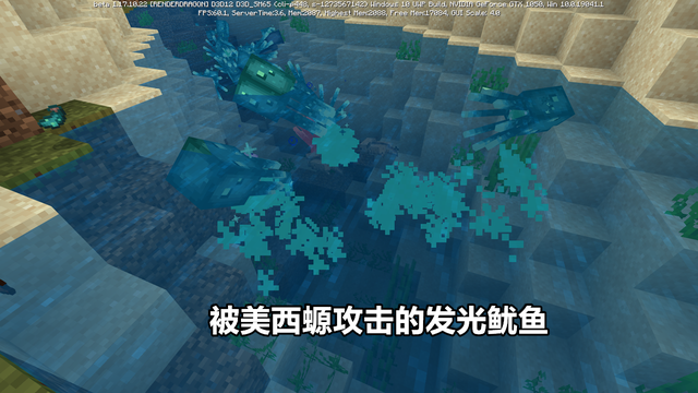 不被玩家喜欢也就罢了,发光鱿鱼最惨的还是拥有太多天敌了,本身没有任何自卫能力的发光鱿鱼,只能是被宰割的存在。发光鱿鱼会被守卫者、远古守卫者和美西螈主动攻击,没有还手能力的发光鱿鱼,碰到了他们三就只有自认倒霉了。当然,碰到最多的应该就是美西螈了,因为二者的生成条件基本一样,Mojang真的是太可恶了。