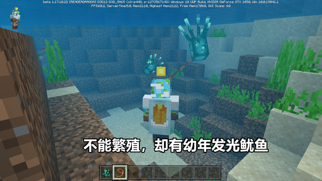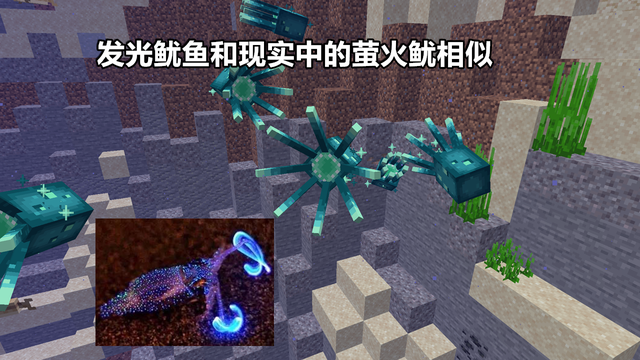 发光鱿鱼并非官方直接决定加入的生物,而是由广大MC玩家自主投票选出的生物,所以即便不喜欢,玩家也得受着,毕竟自己造的孽还得自己来偿。当时参加票选的生物有三个,分别是哞花、冰术师和发光鱿鱼,三种生物各有所长,但发光鱿鱼如何胜出的我也不清楚,只知道发光鱿鱼加入之后,大家都后悔没有投给冰术师了。往事不可谏,来者还可追,所以咱们还是继续聊发光鱿鱼。