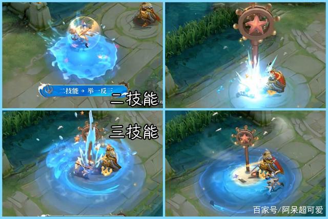我觉得这款皮肤的技能特效就二技能和大招比较独特,首先来看一下二技能,释放之后有一个蓝色的球体为撸老夫子,并且还能听到海水冲浪的气泡音,并且地面上还有一滩海水和海星。