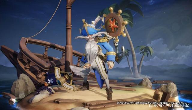 具体皮肤形象还是一个长满了白胡子的老头,主题设计采用了乘风破浪的效果,手中的武器也使用了望远镜和测量工具的元素,细节之处非常多。