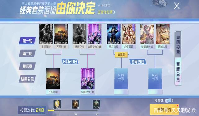 除了6.18“新军需”到来之外,现如今《和平精英》正在进行8大轮盘返场的人气比赛,目前已经进行到了第3轮。