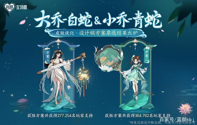 有关青白蛇皮肤优化的消息都已经说了一个多月了,而社区中的优化方案投票也终于出炉了。毫无疑问,方案二完胜,并且两款皮肤都是方案二胜利。说真的,如果不是仔细看,大家很难看出两款方案有何区别。