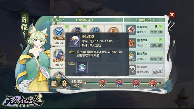 游戏中的神仙学堂是元气大陆的知识殿堂,这里汇集了大量游戏内神仙人物和中国古代的神话历史知识,玩家们可以通过回答趣味题目的形式,快速了解神仙人物的传奇故事,同时领取丰厚的奖励。