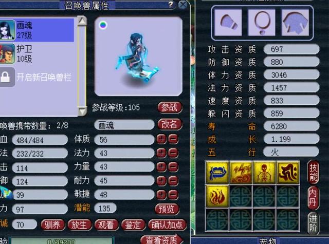但是上面的那位玩家想要提升技术技能数量的想法破灭了,因为合出来的是一只五技能的画魂,这只五技能的画魂还拥有着出其不意和须弥真言双特殊技能,相当于上面的这位玩家消耗了一只七技能的画魂仅仅只是为这只召唤兽更换一下召唤兽的造型,让这只双特殊技能的召唤兽有额外的增加了一个内丹格子。