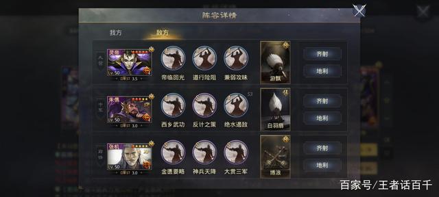 一般来说,法刀体系主要是利用武将自带的指挥战法来进行稳定的输出,如灵帝的帝临回光、吕蒙的白衣渡江等。除此之外,法刀武将也会携带不少的战法来进行辅助输出,毕竟自带战法虽然输出稳定,但也因此没有任何爆发力。而武将携带的各种战法则可以为法刀补充输出,从而带来难以想象的爆发力。