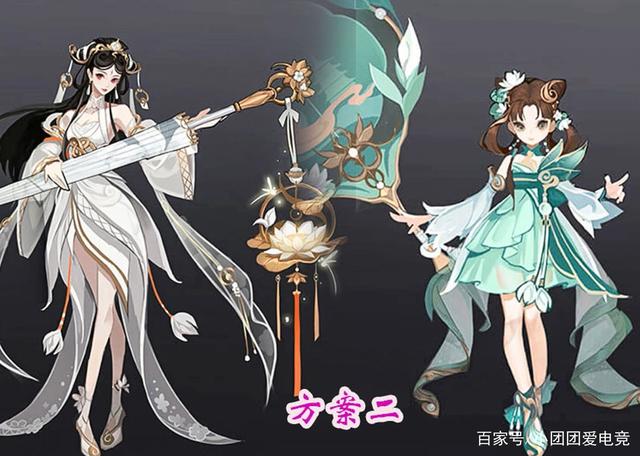 方案二中的白蛇身上穿的衣服露肩包臀,而且裙摆是不规则将大乔美腿完全暴露出来,这样的她更加妩媚性感。手中的提灯柄是雨伞,这是许仙与白娘子相遇相知相许的重要道具。青蛇设计将白色飘带去除,裙摆是轻纱,比方案一少了仙气,但是更多了几分娇俏。小编个人更喜欢方案一的白蛇和方案二的青蛇。