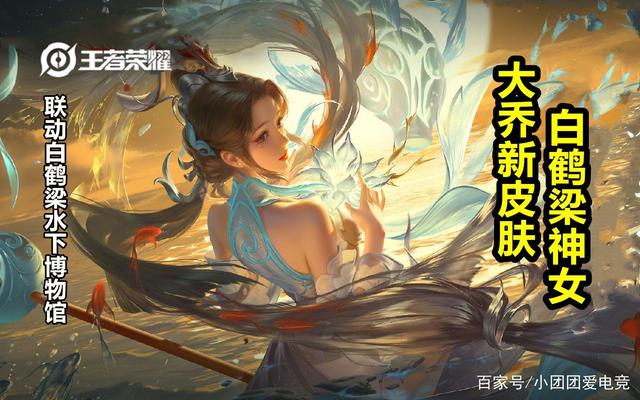 大乔白鹤梁水下博物馆联动新皮肤已经被曝光,皮肤名称非常的神圣高贵“白鹤梁神女”,光从名称便可以知道这款皮肤是与哪方进行的联动,小心思简直不要太明显。官方宣传图片中,大乔手拿石鱼法杖从天而降准备跃入水中,水面之上,一条石鱼露出水面与大乔四目相对。没错,它早早就在这里等候,准备迎接神女。