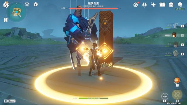 于是我下了钟离,换了个七七,再尝试着打了一次剑鬼,我的个妈呀,好家伙,不小心被它砍中一刀,满血变红血,好像掉了差不多1万血,这攻击力就离谱!