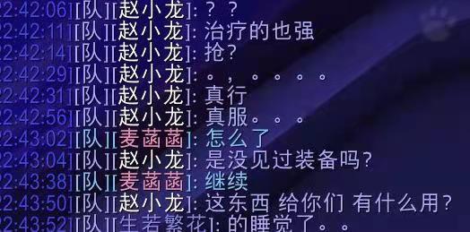 说实话这位法师的话有点太过分了,需求走了治疗的毕业级饰品,还反过来秀优越,真的打破了底线,希望这位法师玩家以后被治疗抢走了输出装备时不要抱怨!