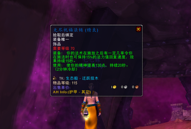 有些贪心的法师和术士也需求件饰品,就是没看清它的属性介绍,无尽祝福法链必须要依靠精神回蓝的,但是DPS装备又能有多少精神属性呢?因此他们最终也不过是竹篮打水一场空而已。最后小探奉劝各位玩家,ROLL装备的时候一定要“看清楚”+“想清楚”,不要什么装备都要拿,恶化了游戏环境,最后受到伤害的还是自己。