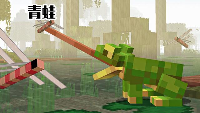 5、青蛙(frogs),落选的青蛙,属于2019年Minecon Live的沼泽群系生物。青蛙的加入,可能带来的会是整个生态系。例如下游它会吃昆虫,上有它的幼年状态是蝌蚪。青蛙死后掉落青蛙腿,是否会成为新一代跳跃药水的材料?总结一下:昆虫、蝌蚪、青蛙腿。