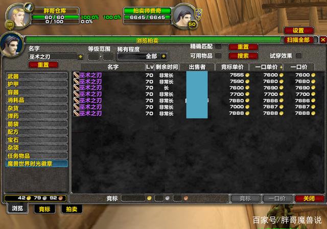 在TBC版本开放的一周内,巫术之刃在拍卖行的价格都在数万金币,然而到了现在,一把巫术之刃已经只需要几千金币了。由于巫术之刃很难卖掉,所以拍卖行的情况就是,每天都是同样的角色在出售,价格却一直在下降。