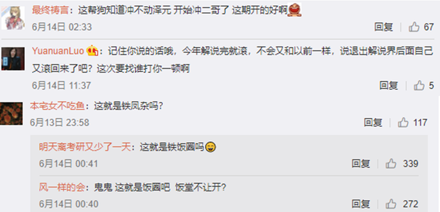 对于现在LPL越来越严重的饭圈文化,曾经德云色的笑笑在企鹅电竞中也表示现在的粉丝都是玻璃心,当时他们打比赛的时候甚至骑脸嘲讽你都没事,电子竞技不就是要用成绩和实力打脸回去吗,现在反而靠场外的舆论压力去压垮一个选手,曾经饭堂节目被迫暂停就是因为当时众多俱乐部和粉丝们不满这节目的尺度,有网友就喜欢看这种开团发言但是有网友就不喜欢自己粉的选手被开团,如今饭堂节目其实已经没有之前那么随意了,但是想不到最终记得还是顶不住舆论的压力宣布退出LPL解说。