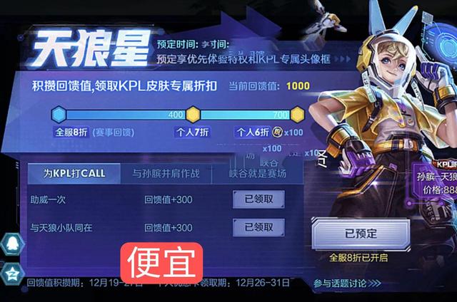 上面这张图片就是孙膑天狼星皮肤上架时的一个活动页面,大家可以了解一下。