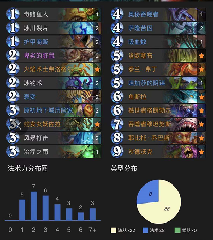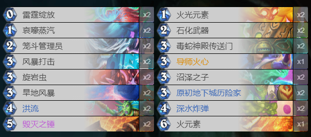 -既然是亡语猎,就离不开恩佐斯宝石,既然是亡语随从为主,就离不开按费拍怪,卡组选择的3个亡语随从是亡首教徒,教师的爱宠和始生保护者,都是中规中矩,偏防守稳健的配置。由于卡组有超高费的法术,所以卡组也配上了始生保护者,抽到宝石或纳格兰大冲撞能打出极高的上限。