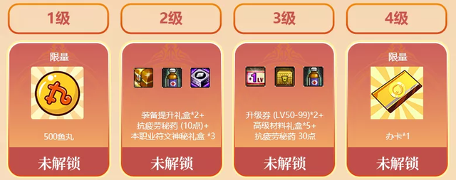 在活动页面完成任务可领取经验,提升专属等级即可解锁海量福利。玩家可获得奖励是10装备强化券+黑钻30天+装备提升礼盒7个+疲劳药30点11瓶+疲劳药10点+本职业符文神秘礼盒3个+本职业稀有护石2个+神器护石神秘礼盒+本职业魔界大战神器护石神秘礼盒+升级券2张+高级材料礼盒5个。