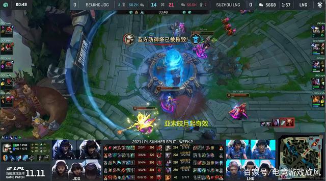 前期,LNG被JDG越塔一换二,但是我们仍然可见,在如此巨大的劣势下,LNG依旧凭借这套体系强势的进场以及不错的输出能力,慢慢扳回劣势,一点一点蚕食对手,最后拿下比赛的胜利。前面我们已经分析了这套阵容的优点,那么接下来小编再分析一下这套体系的缺点。首先很明显的一点,发育周期长,前期亚索除了风墙,基本上伤害属于垫底的那种,也没有出色的控制能力。所以在中期资源的掌控上,亚索方很难拿到真正的优势,皎月前期在野区的刷野能力相较于当前版本火热的莫甘娜,乌迪尔等英雄也都有明显的劣势,这就导致这个体系在前中期会暴露出一定的不足,需要选手用硬实力来弥补,并且因为身板较脆,很容易暴毙,所以对选手的要求很高。
