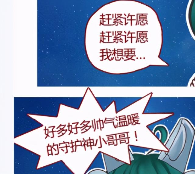 没过多久,蔡蔡惊喜的发现,天空中出现了流星!她激动的喊了出来,随即动作迅速的双手合十,在流星之下许愿,期望自己可以拥有好多好多帅气温暖的小哥哥。不得不说,蔡蔡的愿望也是好多女孩子的愿望呢~谁不想被帅气温暖的小哥哥包围呢?