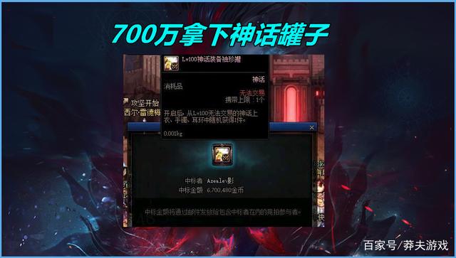 有实力的玩家已经开荒成功,一天时间甚至连“3牛”都已经拿下了,但神话罐子几率并不高,某个欧皇团队率先爆出了神话罐子,但有意思的是,团队中很多玩家都没有带金币,于是“捡漏王”仅仅只花了不到700万,就拿下了令无数玩家梦寐以求的神话罐子!
