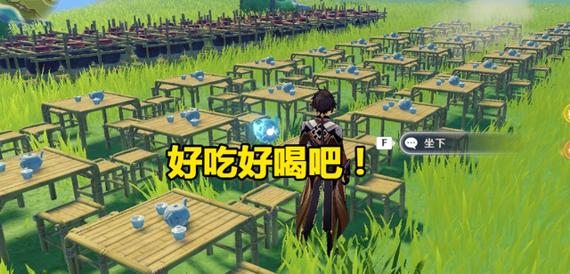 这是什么神仙运气呢?三个五星角色,对于我这种平民微氪玩家来说,至少需要2个月才能抽到,毕竟我可是小保底歪刻晴,150抽才能出当期五星角色的倒霉蛋。因此看到这位玩家的抽卡经历了,盟盟只能默默地【画个圈圈诅咒他了】,然后玩家也收到了自己好友的尘歌壶邀请,好友号称给玩家摆了一桌“酒席”,这意思好像就是【好吃好喝】,好友的反应实在太真实了,不多说,这个尘歌壶的摆设我喜欢,记得给盟盟留一个位子呀!