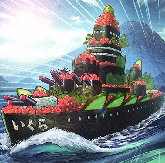 这次要说的卡是这段时间推出的全新卡片。要知道之前我们就曾经吐槽过寿司卡组这一个系列,竟然寿司也能成为卡组,还做得这么帅的样子。他们都是以军舰为原型,以军贯为最基础的单位。所以这一次我们来介绍的还是他们的超量卡片,也就是他们的军贯。