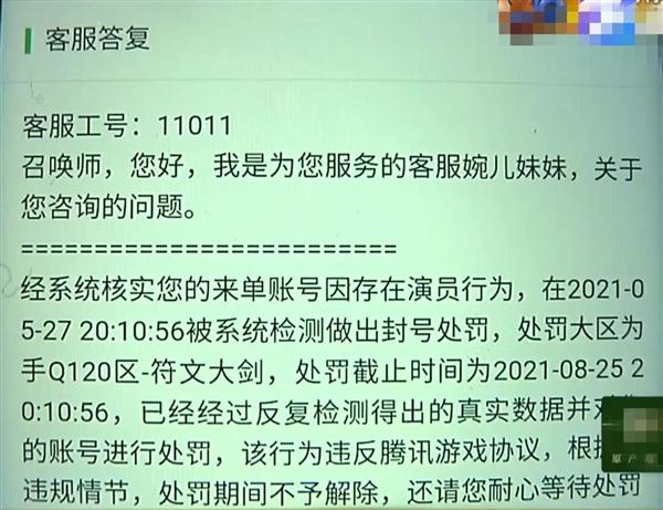 他随后联系客服,得到的回应是账号存在“演员”行为,不予解封——在《王者荣耀》里,“演员”是指故意想要输掉比赛, 又假装认真在玩的人。