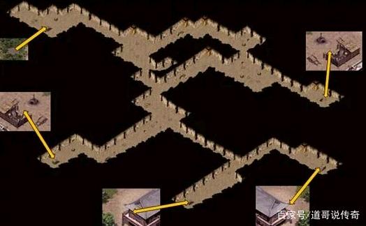 这个经典设定就是--沙巴克密道。以前行会之间攻占沙巴克的时候都只能从下面的一扇门进去,但是通过沙巴克密道就有悄悄出现在沙巴克城内的五个地方。如上图所示就是沙巴克密道的五个出口。当年的沙巴克密道在攻城战中发挥着重要的战略意义,相信很多老骨灰都体验过这样的捷径。