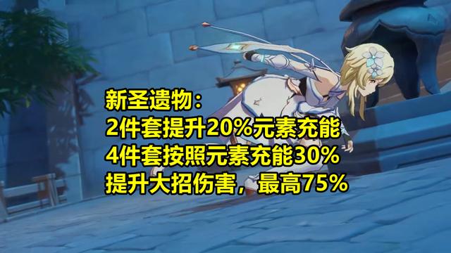 雷主无论是定位还是技能机制都与后续版本中登场的充能套装完美适配。此圣遗物2件套可提升20%的元素充能效率,4件套基于元素充能效率的30%提升大招伤害,最高提升75%。雷主若想吃满4件套效果需佩戴祭礼剑,以及一件元素充能效率的圣遗物。