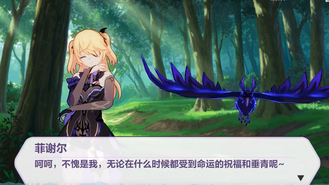 战斗之后,派蒙老是表现得心有余悸的样子,不过也正常嘛,弱小的派蒙确实容易成为怪物的目标。说罢,一只乌鸦从森林中窜出,派蒙就消失不见了。正当此时,一神秘人出现,并说道“饶恕他们吧,奥兹”!好家伙,都第二集了,皇女终于登场了!