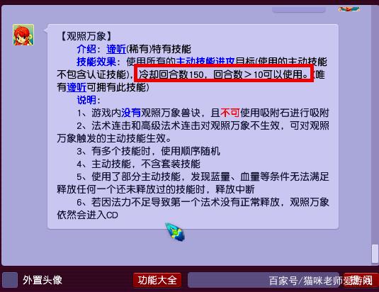 答案是:需要10回合后技能才能使用,间隔150回合后第二次使用。也就是说第11回合谛听的技能才能主动触发,间隔150回合基本就宣判了该技能只能使用一次,所以不要说为什么不5谛听开场秒秒秒,游戏会不平衡。