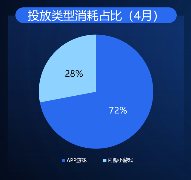 首先是行业投放趋势,就投放类型消耗占比而言,4月内中重度品类、IAP为主的游戏仍然是投放主力军,占去了72%的份额。