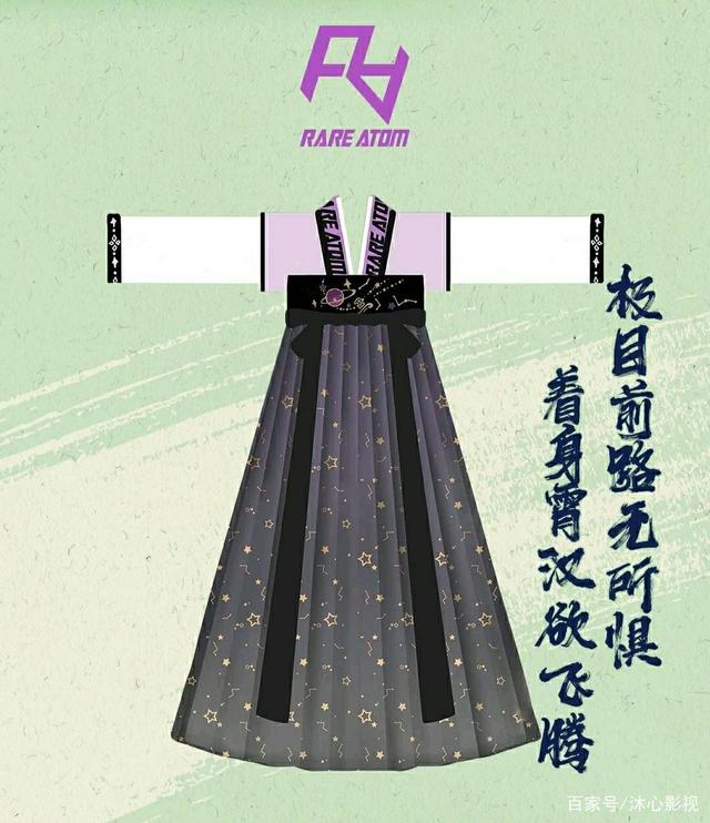 RA 则选取了唐制背予与对襟衫和齐胸裙的搭配。 战队 logo 的紫色 被广泛运用于这套装束中,领缘处使用 RA 战队全称字母作为纹饰,