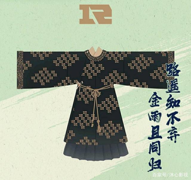 这套宋制圆领与褶裙的搭配是为 RNG 战队定制的华服套装。 如同队 伍无需多言的实力一般 , 设计偏向简明有力的风格 。 作为本次战队主 题华服中极少数仅有两种颜色的作品 ,黑色的沉稳与金色的高贵彼此 对峙又相互支撑,尽显 “ 皇家 ” 的气度与威仪。