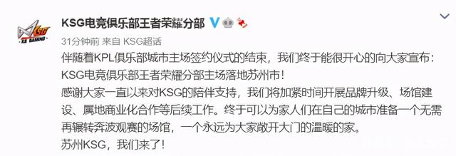 第三家确立主场的队伍就是苏州KSG。KSG落地苏州,北京WB成为仅此一家主场落地北方的俱乐部。虽然打造主场计划是非常有利的,但是主场全部偏南方也是会有点影响的。KSG落地苏州之后,将和南京Hero久竞成为邻居了。