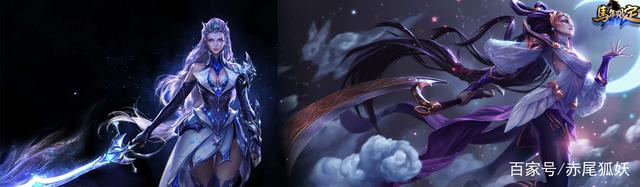 王者荣耀 可以塔下无限飞的露娜(左一)和英雄联盟的秀不起来的皎月女神-戴安娜(右一)不仅仅是技能方面几乎一样,就连外表形象都十分的接近,都是我要代表月亮消灭你!哈哈!相信你们都被消灭过。