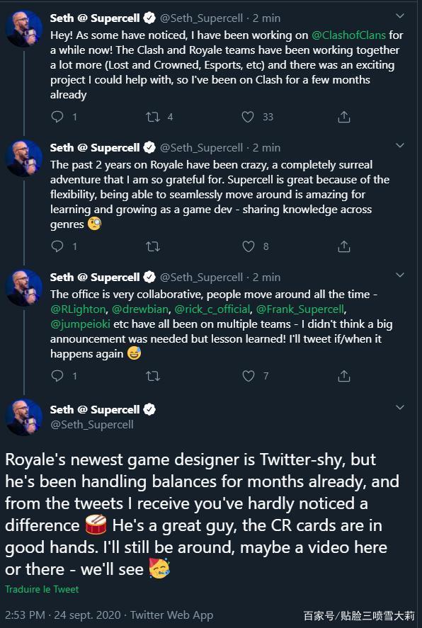 早在上个星期,Seth就已经发文证实了这一消息,并表示如果再次被调部门会通知大家,自己在COC中会有很多事情可以帮得上忙;CR已经由Martin操刀好几个月了;后续依然会偶尔客串一下皇室TV之类的。