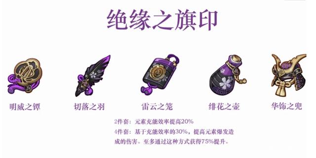 绝缘圣遗物套装,两件套增加充能,四件套充能效率转换成提高大招伤害,适合副C佩戴,如:行秋、香菱,