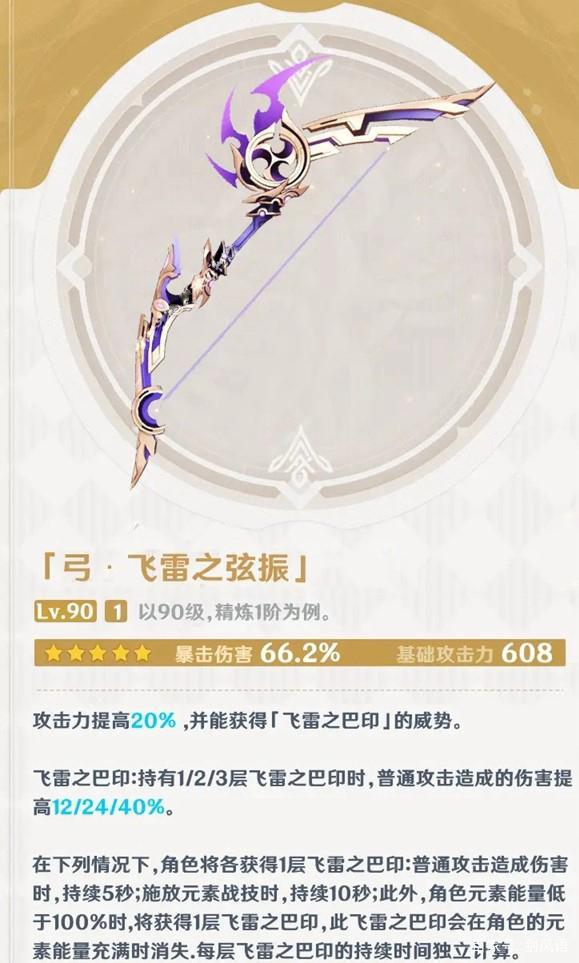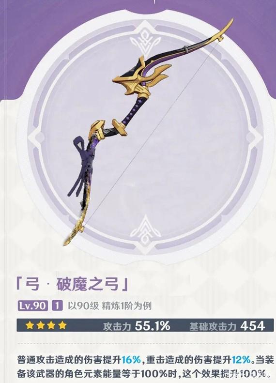 这把新弓箭武器是宵宫专武。从特效词条中就可以看出是完美契合宵宫的输出方式的,当然也适合站场主C打普攻流的角色,如:公子,打普攻的菲谢尔,