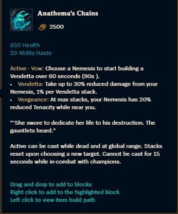简单来说这是一件专门用来针对对方核心的装备,其售价仅为2500,属性上提供650的生命值和20的技能急速,看起来可以说是非常适合辅助和坦克英雄。