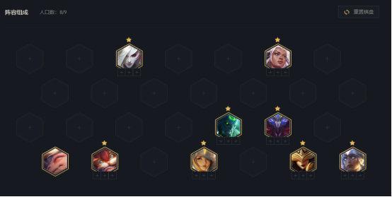 8级是最关键的阶段,需要卖掉原本阵容重新组合,上8之后立马D完全部财产,抢卡尔玛同时拿高费卡,根据你D到的4费和5费卡选择新阵容。