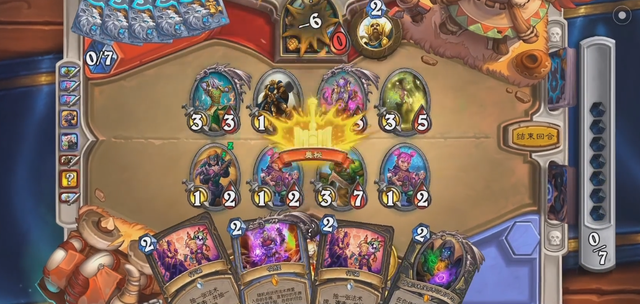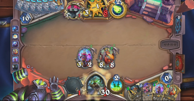 在实战中,前期我们可以通过八爪机器人来加快节奏,效果,使得前期节奏更为顺畅,2费拍曼科里克,3费拍卡扎库斯,先于对手的场面,4费就能做很多的事情。并且有潜伏帷幕在手,也不用担心丢牌太快导致和对面有较大卡差。