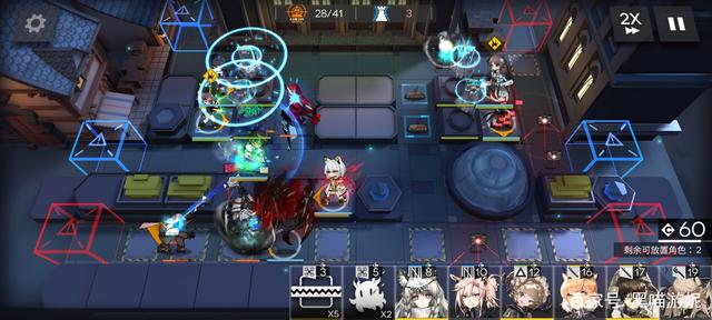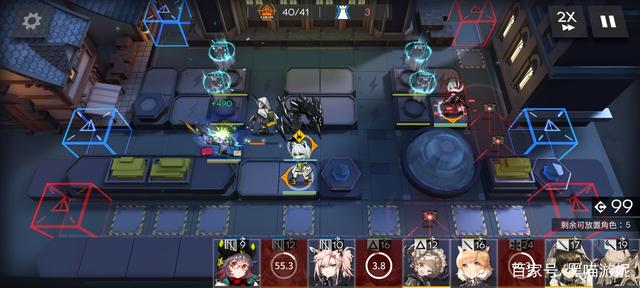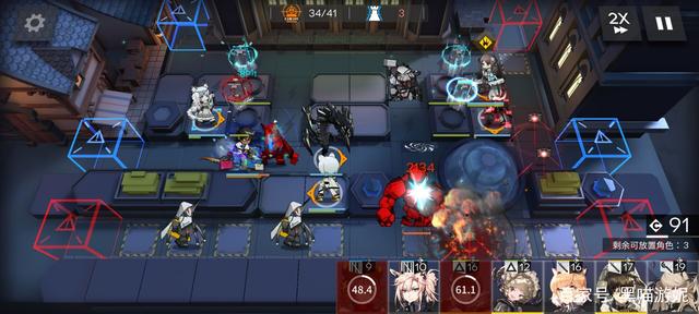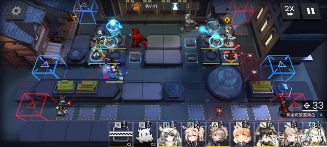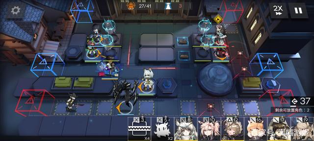 然后第一时间在左上角的高台布置夹子妹或者罗宾,开始在右侧的留声机过道布置夹子,然后等狙击的部署cost,足够了布置W或者能天使冲下攻击,然后继续在面前补架子,之后在狙击上方高台随便补个刷信赖的医疗即可。