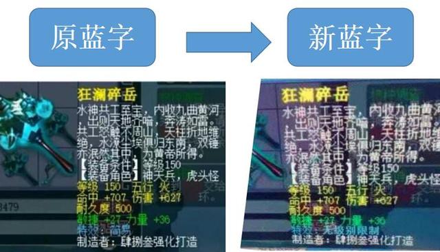 看到上面的这两把武器了吗?要不是小编看过这把武器的原型,小编还真以为上面就是两把属性完全相同,但是蓝字不相同的武器,上面的这把150级的锤子伤害和命中属性都是特高的,伤害,达到了极限,命中距离极限也仅仅只是差了几点,但是这把武器真实状态下所拥有的蓝字效果是简易,后来又被别人给P成了无级别限制,可惜上面的这位玩家不是梦幻的工作人员,她P出来的无级别限制是没有用的。