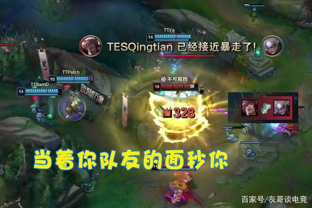 另外有看比赛的观众应该都发现了晴天的一个特点,那就是他打得非常团队,并且不太需要队友的照顾,第一局晴天在拿下一血的情况下没有选择自己通过对线扩大优势,而是放弃兵线两顾中路帮knight建立优势,第二局同样是前期放弃兵线传送下路支援,两局比赛他的参团率非常高,而作为回报,老大哥们便会带他赢下游戏。比赛过程中灰哥有好几次都注意到镜头中的knight在狂笑,他玩得开心了,TES就是比较好赢。