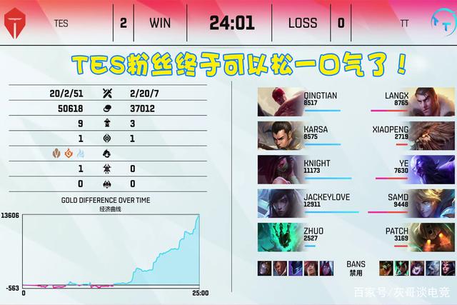 当然,咱们也不能一场而论,毕竟TT的纸面实力还是不够看的,接下来TES将分别挑战RA、RNG和EDG,到时候才是晴天证明自己的时候,让我们拭目以待吧。