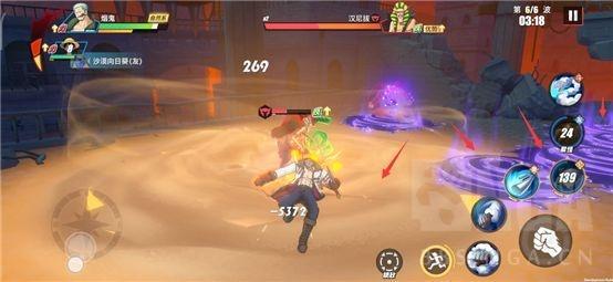 第一波怪刚秒完,第二波就应该入场了,此时我们的技能处于冷却中,无法再打出连招。这里大家可以替换路飞登场,并用他再次打出连招。不过大家也可以不替换伙伴,等烟鬼技能冷却结束后再发动攻击。