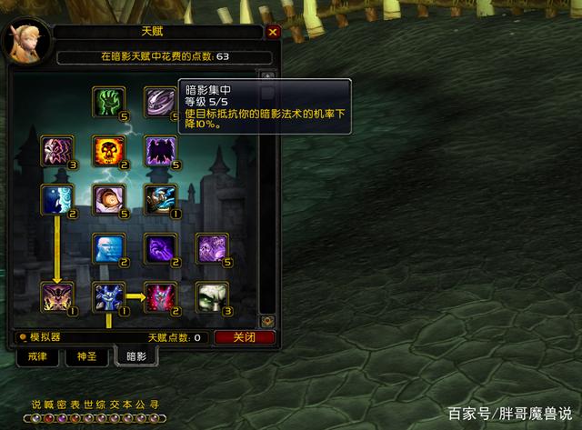 暗牧的天赋暗影集中自带10%的命中,也就只需要6%的命中,76点命中等级就达到了命中上限。