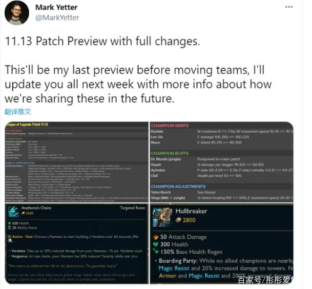 值得注意的是,则是拳头英雄联盟首席设计师Mark Yetter以及设计师鬼蟹最后一次对游戏内容进行改动更新,因为他们接下来将转到拳头旗下另外一款游戏MMO担任总监。