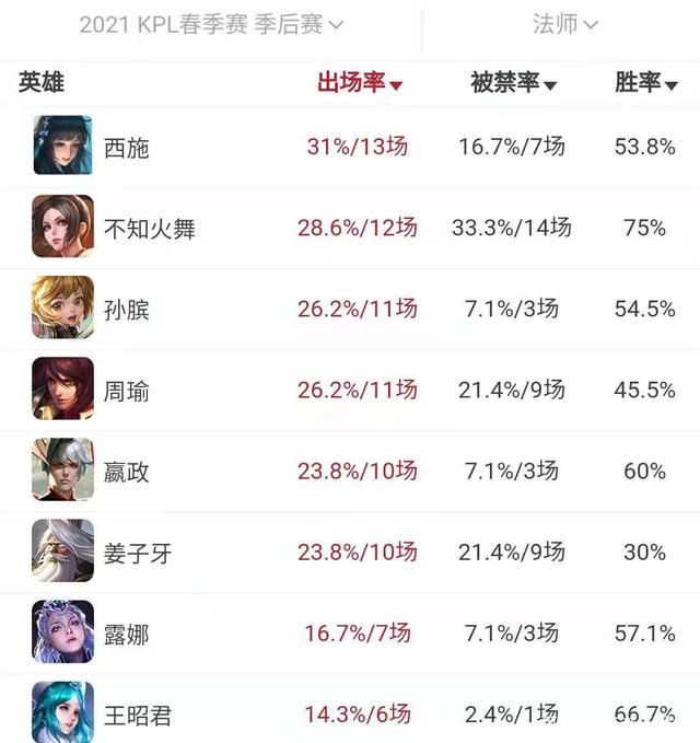 周瑜在整个季后赛的出场次数排在所有法师的第三位,因为样本基数比较小,所以胜率是没有太大参考价值的,出场数也说明了他的强势之处。不知道是向鱼个人不会周瑜还是整个QG没有练过和周瑜搭配的体系,只能说QG打estar的时候好几局都可以出周瑜,但他们都没有选。